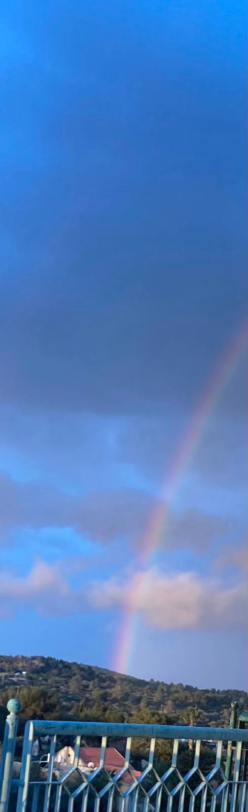 God places a rainbow in the sky after a mabul/flood destroys the world that has become “corrupt” and filled with hamas. The Hebrew word hamas (the h pronounced as a hard guttural ch), homophonous with the Palestinian militia’s name, means “lawless violence.” Betokening God’s berit olam / “eternal covenant” with our world,1 the rainbow comprises a spectrum of seven colors.